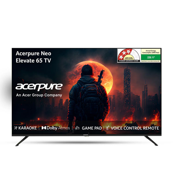Acerpure 164cm (65 inch) Elevate Neo QLED UHD SmartTV GTV 5.0 AP65UG75PELN5 |Android 14||Dolby Vision,Dolby Atmos|50W Sound|Tuner|Wi-Fi Direct|Bluetooth|ALLM|VRR|MEMC|Karaoke|AI Content|Gaming|Wall Mount